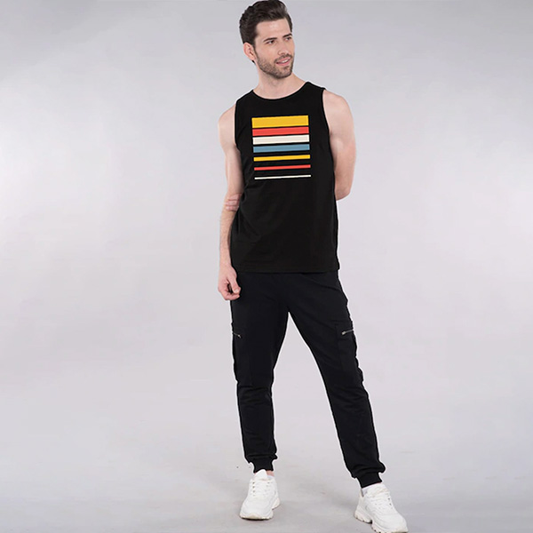 Men Black Printed Cotton Jersey Innerwear Vest