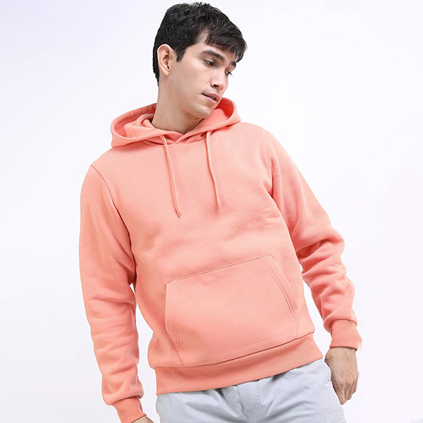 Men Peach Coloured Hooded Sweatshirt
