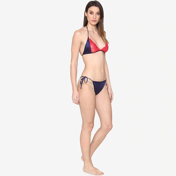 Navy solid nightwear set,Navy solid maxi nightdress, has a stylised square neck, sleeveless, Navy solid top, has shoulder straps, Navy solid pyjama, has slip-on closure, Comes with matching bath robe, bikini bra and a pair of thongs.