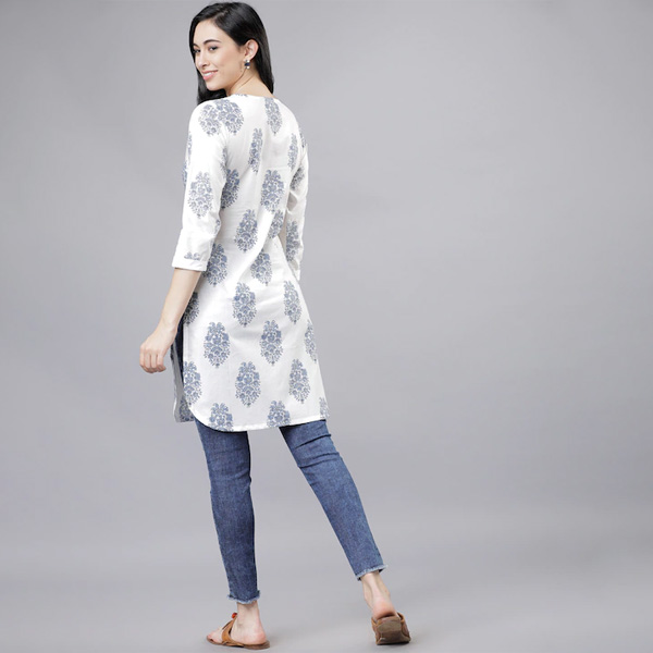 White & Blue Printed Tunic