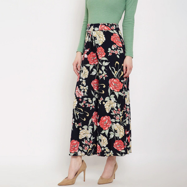 Women Black & Red Floral Printed Flared Palazzos