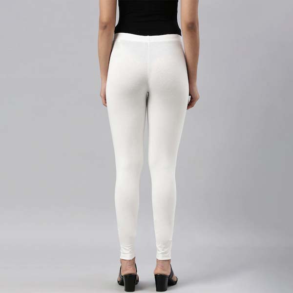Women Cream-Coloured Solid Ankle-Length Leggings