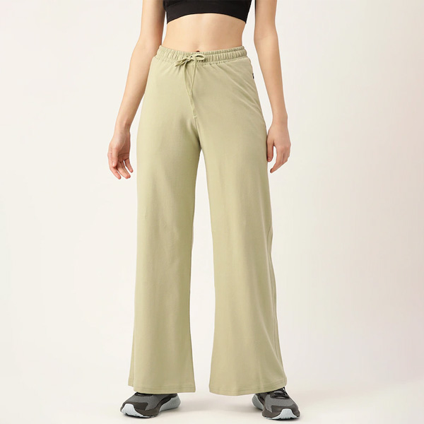 Women Olive Green Solid Cotton Wide Leg Track Pants